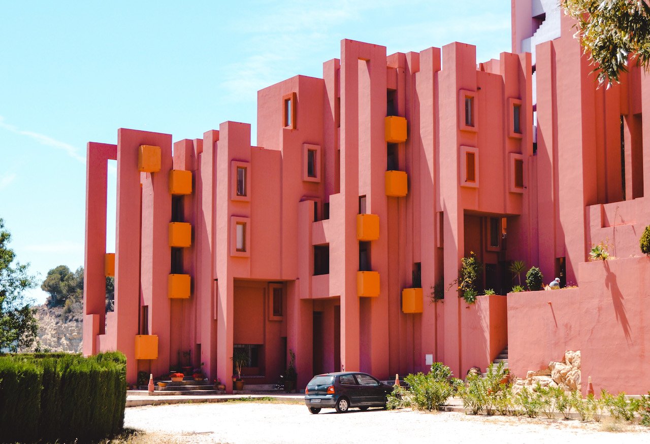 Son dos edificios del arquitecto Ricardo Bofill. Seguramente habrás visto muchas veces el edificio de la Muralla Roja en fotos. Desafortunadamente, ya no se puede visitar por dentro, ya que son casas privadas y debido al turismo masivo tuvieron que cerrarlo y sólo lo puedes visitar si te alojas allí.