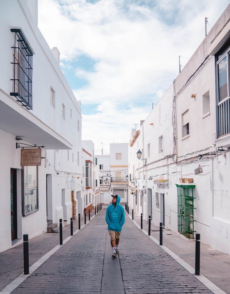 Conil, es un pueblo pesquero tradicional. Con bonitas calles empedradas, fachadas de un blanco impoluto, flores y una playa super larga, la Playa de Castilobo. Nosotros en octubre, pudimos conocerlo de una forma relajada y tranquila, pero en verano es un lugar muy turístico y con mucha gente. Os recomendamos pasear por las calles del casco histórico, la Plaza Puerta de la Villa, el Mercado de Abastos, la Iglesia de Santa Catalina y subir a lo alto de la Torre Guzmán para disfrutar de las vistas desde arriba al pueblo y al Atlántico.