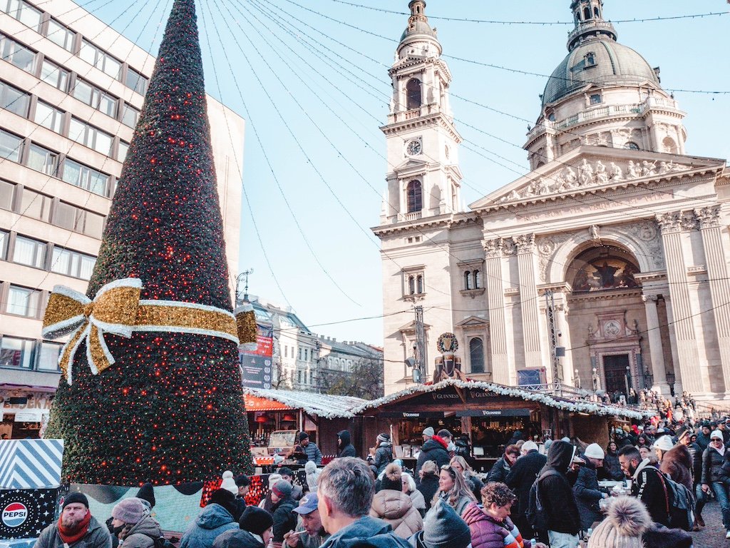 Situado frente a la majestuosa Basílica de San Esteban, este mercado ha sido elegido por cuarto año consecutivo como uno de los mejores mercados navideños de Europa. La verdad que el ambiente es muy guay. Hay varias casetas con decoración navideña, artesanía, accesorios y una zona muy amplia con puestos de comida y bebida. En el centro del mercado, hay un árbol de navidad y varias mesas y sillas para sentarte a comer. También hay algunos puestos en las calles que van a parar a la plaza.