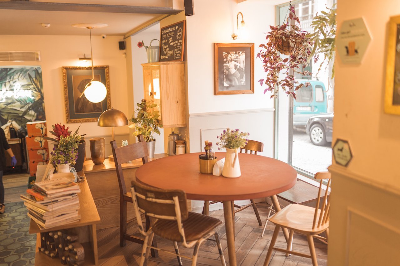 Lisboa está llena de cafeterías cuquis como ésta. Decorada con plantas, regaderas, escaleras de madera, bombillas, es súper bonita. Puedes ir a desayunar ó a tomar un brunch y tiene opciones veganas.