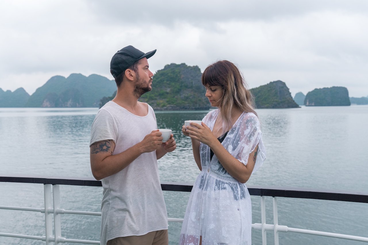 Si te preguntas cómo visitar la Bahía de Halong y por cuánto tiempo, nosotros decidimos hacerlo sólo de una noche ya que los cruceros de lujo son algo caros y con una noche puedes tener suficiente para conocer la Bahía de Halong. Contratamos uno a través Booking, pero a menos de dos semanas de nuestro viaje a Vietnam nos lo cancelaron. Según nos dijeron, había una fiesta privada en el barco y no podíamos alojarnos allí. Al final, mientras buscábamos opiniones de otros cruceros nos contactó Mon Cheri Cruises para invitarnos a su crucero durante una noche y dos días. Miramos opiniones y se encontraba entre uno de los mejores cruceros de la Bahía de Halong, Vietnam. Así que, este fue nuestro crucero elegido y el que te recomendamos ante la duda de cómo es mejor visitar la Bahía de Halong.