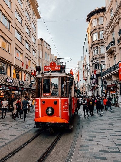- Tranvía: Hay 4 líneas de tranvía operativas. La línea T1 (Bagcilar – Kabataş), es la más utilizada ya que conecta Sultanahmet con Karaköy, T3 (Kadıköy – Moda), T4 (Topkapi – Mescid-i Selam) y la Linea T2 Taksim-Tünel, que es el tranvía antiguo.