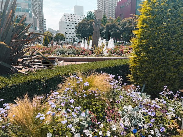 El parque de Yamashita se construyó en 1930 y es uno de los imprescindibles que ver en Yokohama. Se encuentra frente al mar, donde tendrás unas bonitas vistas del puerto. Los jardines y parques de Japón nos enamoraron. Perfectamente cuidados, llenos de flores y todo tipo de árboles y plantas.