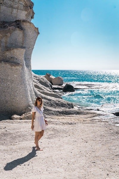 Las playas y calas de Cabo de Gata nos encantaron porque son diferentes a las de otros lugares que hemos visto. Arena oscura, formaciones calizas blancas que contrastan con el azul intenso del mar, paisajes desérticos, dunas… Algunas más salvajes y otras más tranquilas donde poder hacer snorquel. Como recomendación, llevar escarpines para las piedras y en nuestra opinión, evitar ir en verano por las aglomeraciones. Por suerte, en Cabo de Gata hay buen clima muchos meses del año (a excepción del viento) y se puede disfrutar de las playas en otras épocas como primavera y otoño.