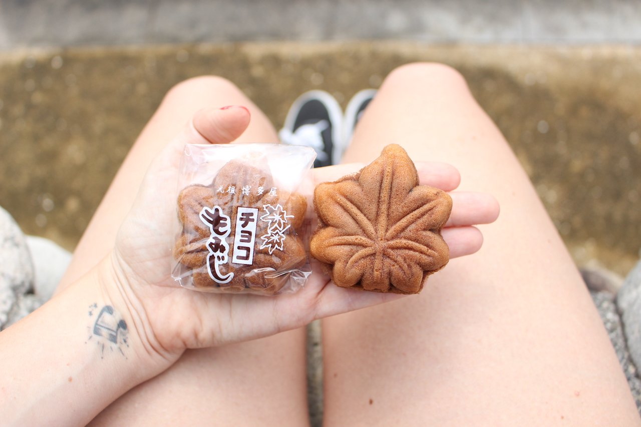 - Calle comercial Omotesando. Aquí puedes probar entre otras cosas el famoso, momiji manju, unos bollitos con forma de hoja de arce rellenos de dulces de todo tipo de sabores. También son típicas las ostras frescas.