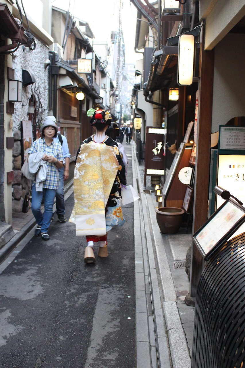 Los restaurantes de Pontocho, suelen ser más caros y también hay mucha gente. Con suerte podrás ver alguna Maiko o Geisha paseando por aquí.