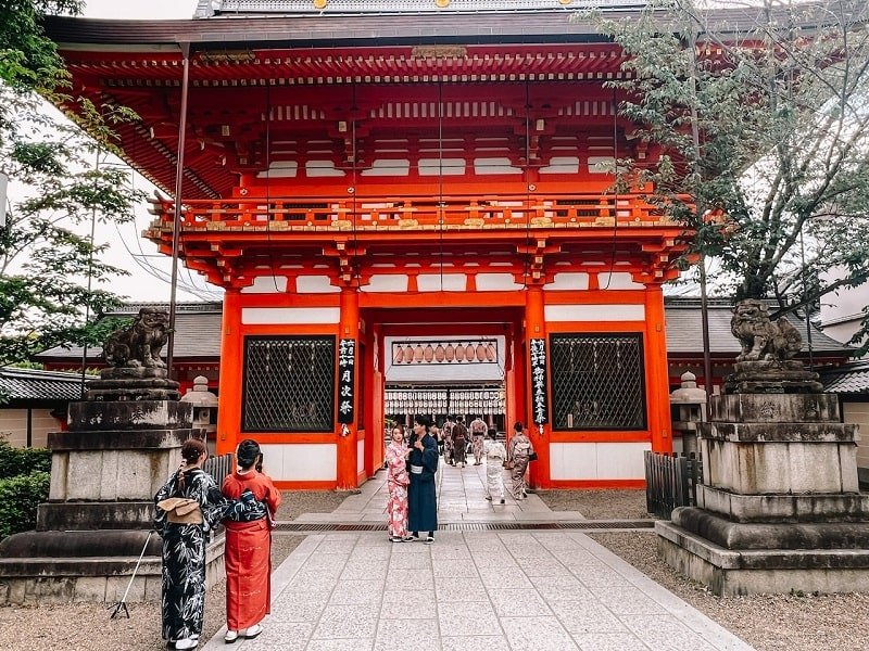 En el Santuario Yasaka, comienza el barrio de Gion, uno de los barrios de Geishas más conocidos de Japón.