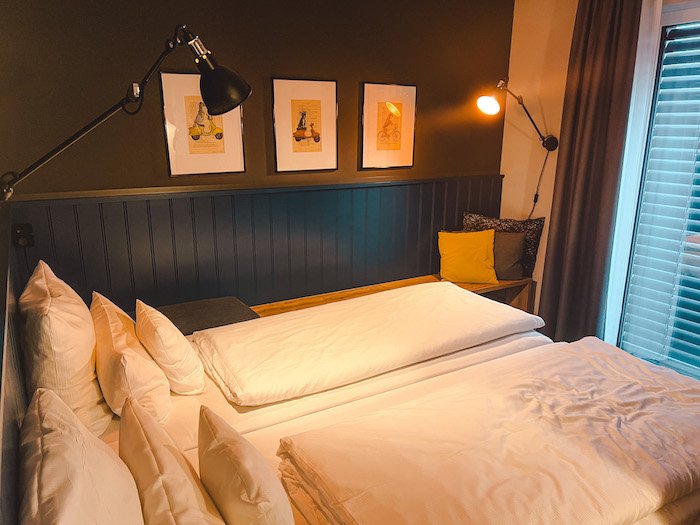 En Mainz, nos alojamos en un hotel que recomendamos 100%. Está situado a 5 minutos caminando de la estación de trenes y cerca del centro histórico. El hotel es súper moderno, con una decoración brutal, nos encantó.