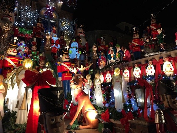 Una de las mejores cosas que hacer en Nueva York en Navidad y una de las más alucinantes, es pasear por el barrio de Dyker Heights viendo las casas decoradas de Navidad. Es algo que no te puedes perder y que recomendamos ver una vez en la vida, si te gusta la Navidad. Es un espectáculo en toda regla. Parece un concurso por ver qué vecino pone más luces, más figuras y más adornos navideños. Algunas de las decoraciones cuestan más de 10.000 $. Alucinante! Sin duda es el TOP de la Navidad.