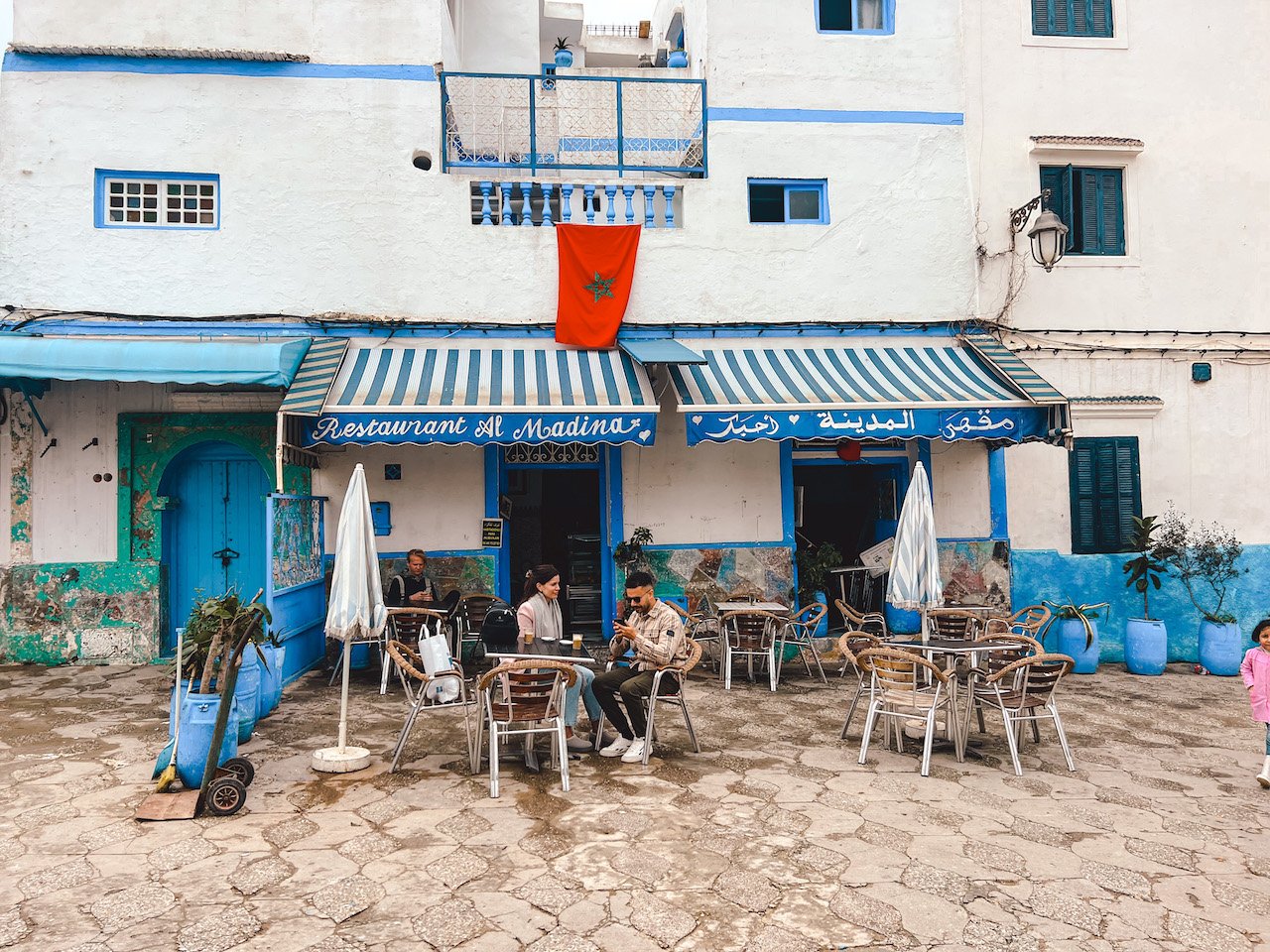 Para comer te recomendamos el Restaurante Alibaba. Está fuera de la Medina pero a un par de minutos caminando desde la Puerta principal. Hay de todo, comida marroquí, pescado y marisco, y comida más tipo fast food, como burritos, hamburguesas… Está todo muy rico y muy bien de precio.