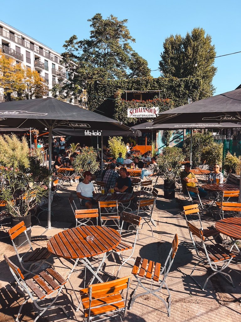 Holzmarkt es el típico lugar alternativo que ha surgido de una zona abandonada y se ha sabido reconstruir. Es un espacio cultural y de ocio. Hay conciertos, arte, gastronomía en varios foodtrucks, bares para tomar algo, terrazas en muelles sobre el río con un ambiente brutal, música, tiendas, hasta un estudio de tatuajes.