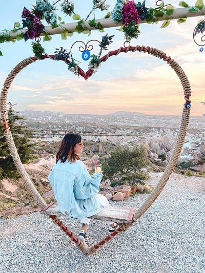 En el mirador de Love Valley, encontrarás varios puestos donde tomar algo y muchos columpios y sitios donde hacerte fotos.