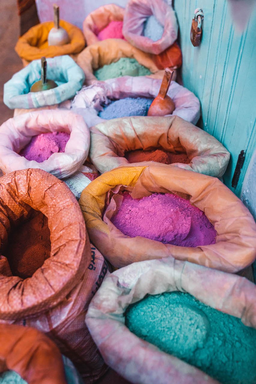 Desde esta plaza, si continuas bajando hacia el Restaurante Casa Hassan, hay una tienda donde venden tintes de colores para pintar, los verás expuestos y son súper bonitos.