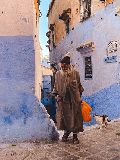 Si te preguntas si Chefchaouen es peligroso, ¡para nada! La gente en Chaouen es encantadora y muchos de ellos hablan español, sobre todo la gente más mayor. Muchos van vestidos con sus chillabas y hacen todavía más bonitas las imágenes de la ciudad.