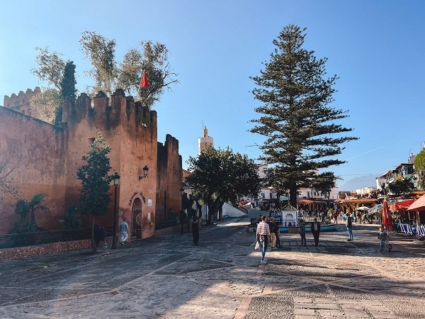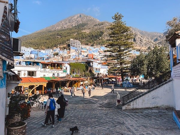 Esta plaza es súper local y auténtica, tiene una bonita fuente en medio y vistas a las montañas del Riff.