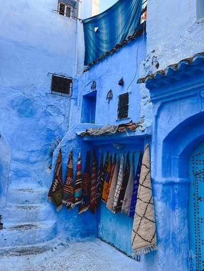 Antes que nada, seguro que te estás preguntando por qué Chefchaouen es azul. Hay varias teorías aunque no se sabe cuál es la real. Una de ellas es que es una tradición judía. Al parecer, tras haber sido expulsados de España en el siglo XV, muchos judíos se instalaron en Chefchaouen. Empezaron a pintar las puertas de azul para reemplazar el verde del Islam y porque el azul les recordaba al cielo. También hay otra versión y es que el azul de las paredes, ahuyenta a los mosquitos y por eso empezaron a pintar de azul toda la ciudad. Sea el motivo que sea, lo cierto es que su color, ha hecho que sea un lugar muy turístico y conocido, y la convierte en la la ciudad más bonita de Marruecos.