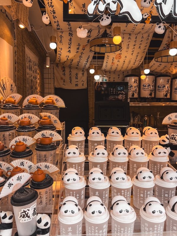 Los pandas decoran hoteles, fachadas, pantallas 3d y hay todo tipo de merchandising de pandas por toda la ciudad. Incluso hay comida y bebida de temática pandas!