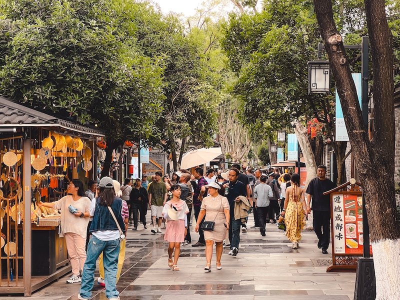 Conocido como el «Callejón Ancho y Estrecho», es uno de los barrios históricos más famosos de Chengdu. Este conjunto de callejones conserva la arquitectura de la dinastía Qing y ofrece una mezcla de cultura antigua y modernidad. Los callejones están divididos en tres partes: el Callejón Ancho (Kuan Alley), el Callejón Estrecho (Zhai Alley) y el Callejón Bienvenido (Jing Alley o Jingxianzi). Aquí encontrarás tiendas de té, restaurantes tradicionales, boutiques modernas, souvenirs, street food y muchos pandas por todas partes.