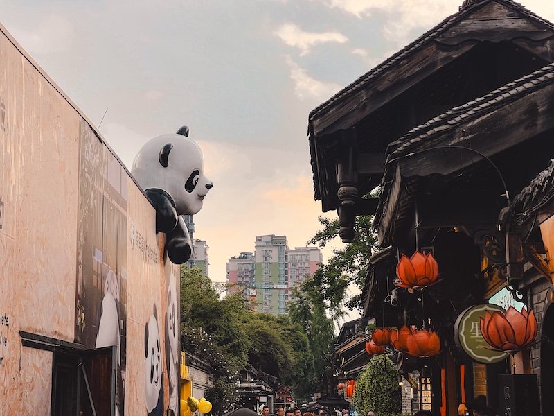 Chengdu es conocida principalmente por ser la ciudad de los pandas. Una ciudad que combina historia, ocio y una conexión única con la naturaleza. Famosa por ser el hogar de los adorables pandas gigantes, Chengdu también destaca por su gastronomía, su ambiente relajado y su hospitalidad. Lejos del bullicio de otras megaciudades chinas, aquí el tiempo parece fluir más despacio, con ciudadanos que disfrutan del té y de los parques como si no hubiera prisa por nada. Y además si te gustan los pandas, los vas a ver por todas partes.