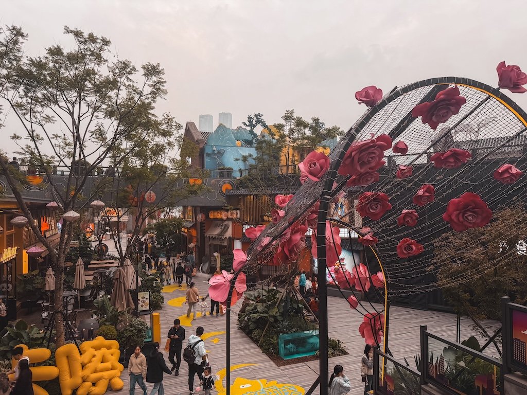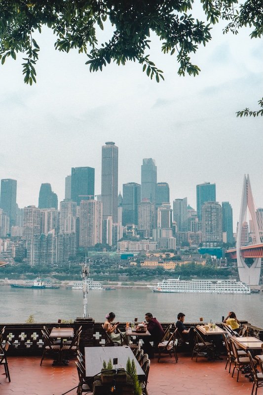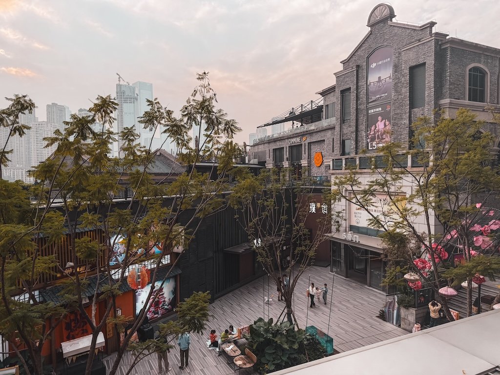 Otra de las cosas que hacer en la ciudad es simplemente perderse por sus calles. Es una ciudad muy fotogénica donde se combina lo moderno con lo tradicional. Hay una zona en la ladera de la montaña para pasear (Cliff Boardwalk), junto a Hongya Cave, llena de cafeterías con vistas muy chulas, como Bansan Chashi. El sitio se llama Jiefangbei Pedestrian Street Daijia Alley (en Amap). Busca también Daijia Alley Old Street. Toda esta zona está muy cerca de los hoteles donde nos alojamos y de la parte de arriba de Hongya Cave.