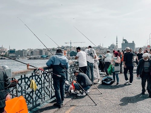 Karakoy, se encuentra cruzando el Puente de Gálata, desde Eminonu. Es un barrio de pescadores de Estambul que ver en 4 días. De hecho, puedes ver muchos pescadores sobre el puente de Gálata y debajo del puente hay muchos restaurantes donde la especialidad es el pescado.