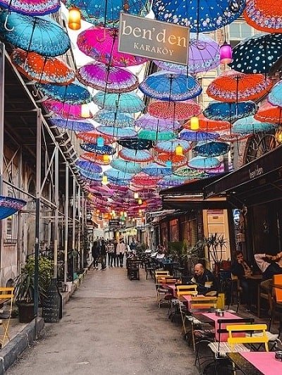 Aparte de recorrer la avenida junto al Bósforo, las 3 calles por las que te recomendamos callejear son Kemankes, Mumhane y Necatibey. En estas 3 calles, están concentrados todos los locales de moda de Karakoy. Street art, terrazas coloridas, enredaderas, lamparillas de colores, cielos de paraguas, osos de peluche, comida rica y variada y mucho ambiente, sobre todo los fines de semana.