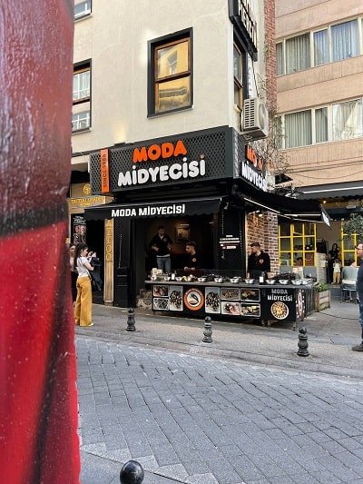 Para comer en esta avenida, encontrarás de todo, comida típica turca y comida de otros lugares del mundo (como Gyozas, falafel, hamburguesas, waffles…). Nosotros probamos Hat Doner Kebab, nos encantó y tiene un grafitti súper chulo. En frente, puedes probar los famosos mejillones rellenos de arroz (Midye dolma) que venden en muchas zonas de Estambul.