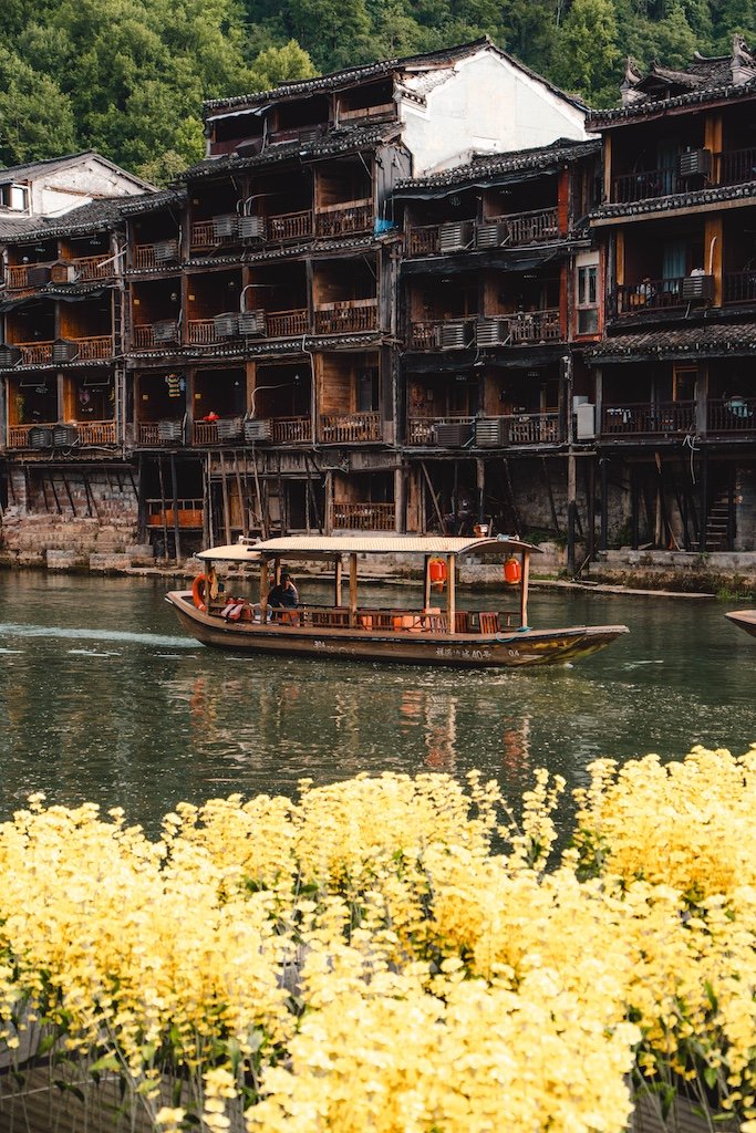 Sin duda es el motor principal de Fenghuang. Todo ocurre alrededor del Río. Puedes pasear a ambos lados, cruzar sus puentes, ver las barcas pasar, hacer miles de fotos… porque Fenghuang es un lugar precioso y súper fotogénico.