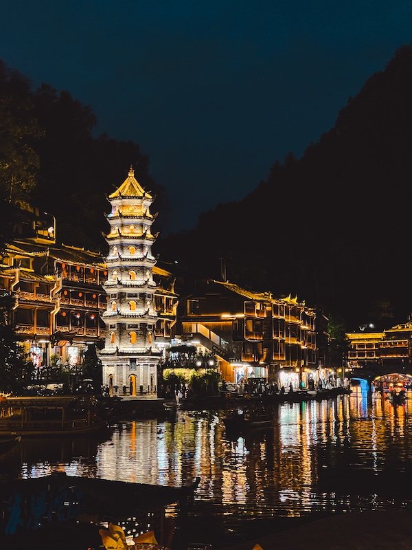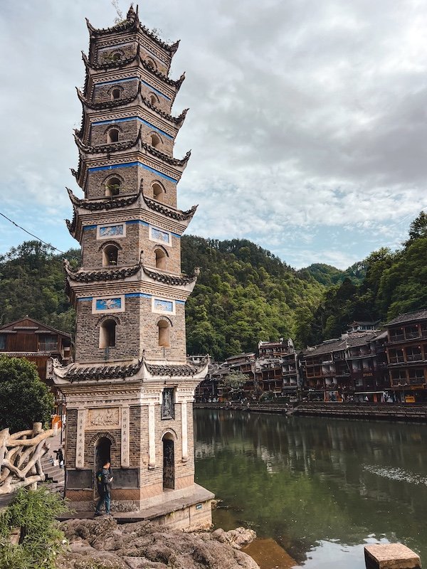 Esta pagoda es uno de los edificios más bonitos que ver en Fenghuang tanto de día como de noche.