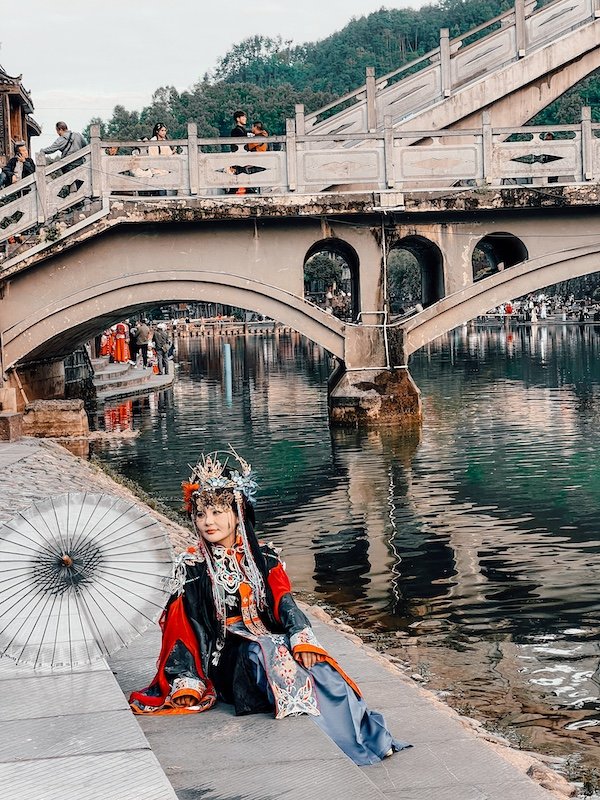 Situada en una zona montañosa y atravesada por el río Tuojiang, la Ciudad del Fénix posee más de 300 años de historia, ya que fue construida en el año 1704 durante la dinastía Qing, y su población pertenece, en su gran mayoría, a las minorías étnicas de los Miao y de los Tujia. Teníamos muy claro que era un imprescindible a añadir en nuestra ruta por China de 21 días.