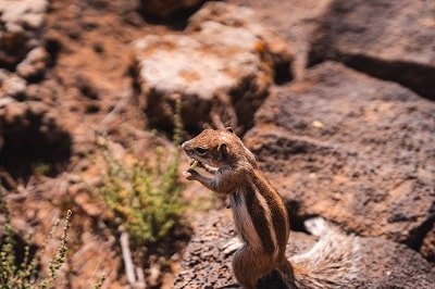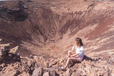Después hay un pequeño tramo de escalones y llegas a la cima. El camino está delimitado con rocas y es fácil de hacer. Una vez arriba, puedes recorrer todo el cráter del volcán y es una pasada. Super recomendable. Si te preguntas dónde ver las ardillas en Fuerteventura, puedes encontrarte con estos graciosos roedores a lo largo del camino.