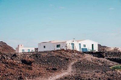 Antes de llegar al parking de la playa, pasas por el pueblo de Cofete. Un pueblo que parece anclado en el tiempo y que es super curioso de ver porque viven prácticamente aislados del mundo y del resto de la Isla. También encontrarás un restaurante donde comer o tomar algo, Restaurante Cofete. Nosotros comimos allí para coger fuerzas para el camino de vuelta.