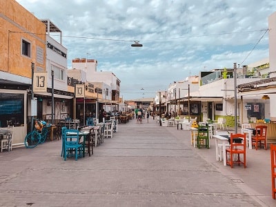 El paseo que recorre la costa es una zona de más ambiente en Fuerteventura y muchos sitios donde comer o cenar. Ademas, desde aquí, hay unas vistas super bonitas con Lanzarote e Isla de Lobos de fondo. También te recomendamos la Calle Iglesia, llena de locales y terrazas muy chulos y muy animada. En el mapa con las localizaciones, te dejamos algunos restaurantes que nos recomendaron.