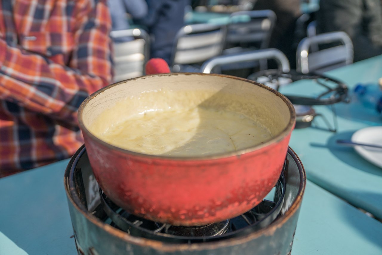 Uno de los platos típicos de Ginebra y del resto de suiza, es la Fondue de Queso. Y aquí puedes encontrar una de las más económicas de la ciudad. Aun siendo económica, cuesta 25 euros por persona. Es un sitio en el que hay varios platos del día, aparte de la fondue. Comes en mesas grandes de madera, con bandejas, al aire libre o en un comedor cerrado con estufas. El sitio, la verdad, que es bastante curioso, porque es como un antigua sauna, con vestuarios. Y estás rodeado de gaviotas y patos.
