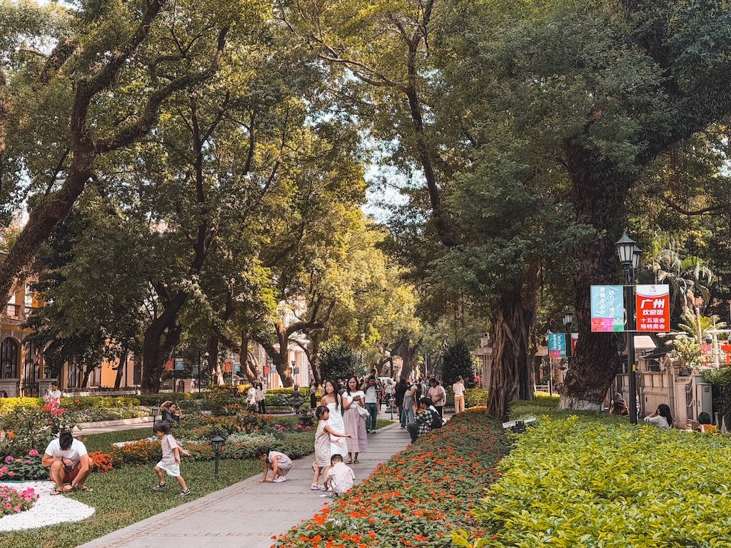 Guangzhou es una ciudad de contrastes. Y si paseas por la zona de Shamian Island, parece que te trasladas a una ciudad europea. Y es que este barrio es una antigua concesión europea con edificios coloniales, calles tranquilas y un ambiente muy distinto al resto de la ciudad. Perfecta para pasear sin prisas por la mañana.