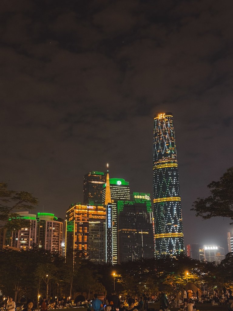 - Haixinsha Park. Un parque junto al río con vistas espectaculares a la Canton Tower, especialmente bonito al atardecer. De noche podrás ver los rascacielos y puentes iluminados.