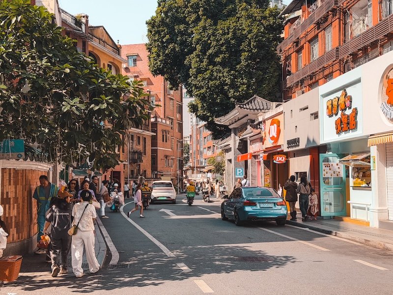 Si buscas un plan más local, algo que hacer en Guangzhou es pasear por estas dos calles. Perfectas para descubrir la vida de barrio, comer en restaurantes locales, puestos callejeros… lejos de las zonas más turísticas. Muchas calles y barrios de Guangzhou nos recordaron al Sudeste Asiático.