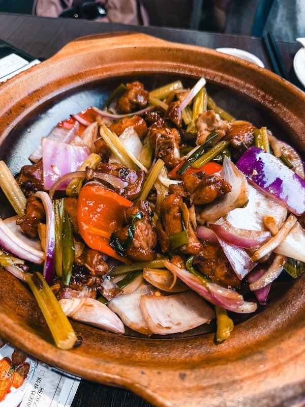 - Clay pot rice. Arroz cocinado en cazuela de barro acompañado de carnes, verduras o salchicha china.
