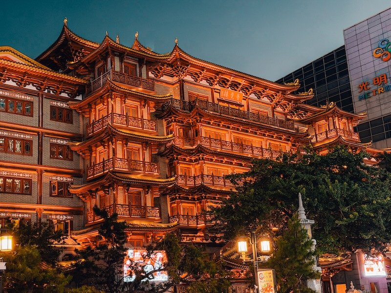No te puedes perder Dafo Temple (Templo del Gran Buda), un templo budista sorprendente en pleno centro urbano, muy tranquilo por la noche y perfecto para cerrar el día. Es especialmente bonito de noche iluminado con el contraste con los rascacielos de fondo. La entrada es gratuita.