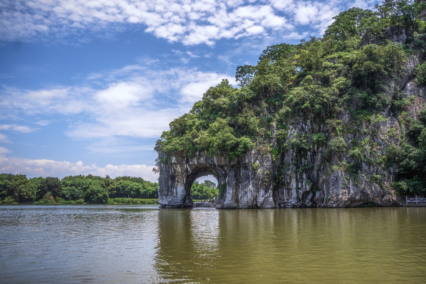 Es una de las imágenes más famosas de Guilin. Una formación rocosa natural de uno 55 metros que parece un elefante bebiendo agua del río Li.