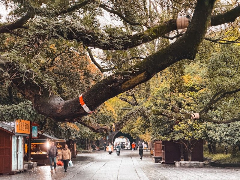 Se encuentra dentro de un recinto turístico de pago en pleno centro, junto al lago Shanhu. Si no quieres pagar entrada, puedes verla desde la orilla opuesta del río.