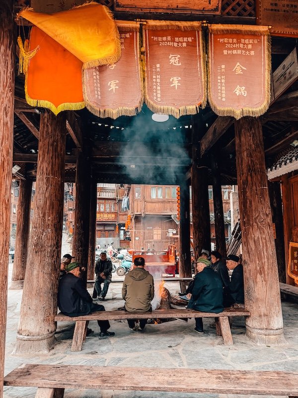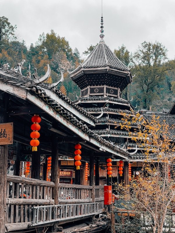 Torres del tambor, símbolos de la cultura Dong. Hay varias repartidas por el pueblo, cada una perteneciente a un clan diferente. Son el corazón social del pueblo, donde históricamente se reunían los vecinos. Podrás ver a los lugareños sentarse junto al fuego cada tarde.