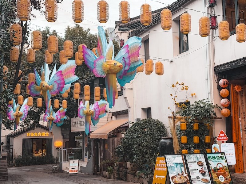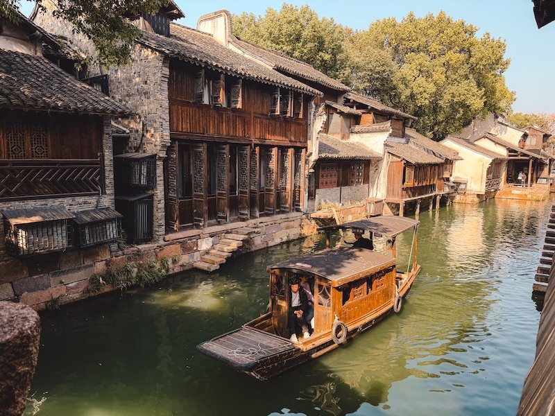 Nosotros pasamos el día recorriendo la zona Oeste de Wuzhen. No nos dio tiempo a ver la este. Aquí encontrarás arquitectura tradicional con canales, barquitos, puentes de piedra, farolillos… Una ciudad del agua preciosa.