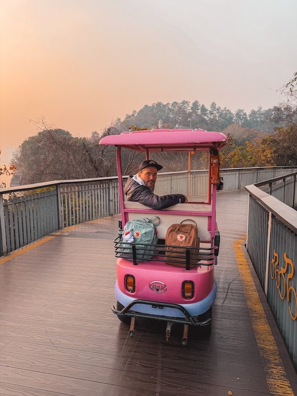 Durante nuestro viaje por Hangzhou, nos movimos principalmente en metro, pero sobre todo usamos Didi (es como el Uber y se usa a través de la app de Alipay), ya que el Didi en China es muy económico y cómodo para desplazarte por la ciudad.