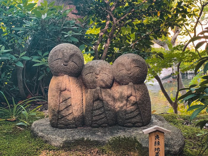 En él vas a encontrar distintos jardines, varios estanques, vegetación, flores, centenares de estatuas de jizo, una estatua de Kannon y un mirador con vistas de la ciudad súper bonitas.