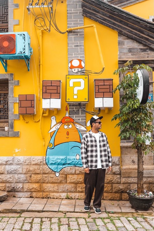 Como nos dedicamos a caminar por la ciudad, descubrimos esta otra zona muy animada también. Hay una plaza peatonal con 2 puertas antiguas y varias calles con edificios tradicionales con murales, farolillos, muchas tiendas de productos locales, artesanía, joyas….
