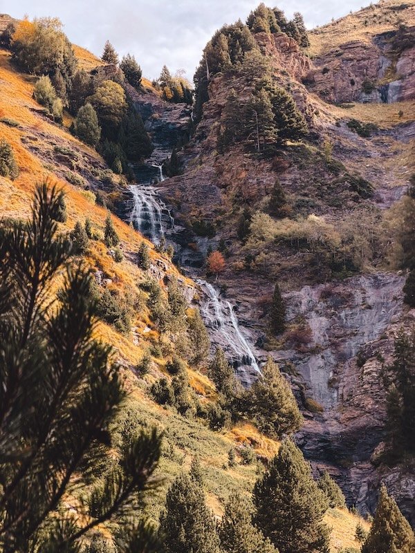 Para empezar la ruta de las 3 cascadas tienes dos opciones. Una es aparcar en el pueblo de Cerler y desde allí empezar la ruta de las 3 cascadas. Es una ruta fácil de 6,86 km. O seguir más adelante hacia el parking Al Born (lo dejamos localizado en el mapa del final del post) y empezar la ruta desde allí que es mucho más corta y fácil. Si vas en temporada alta caben muy pocos coches.