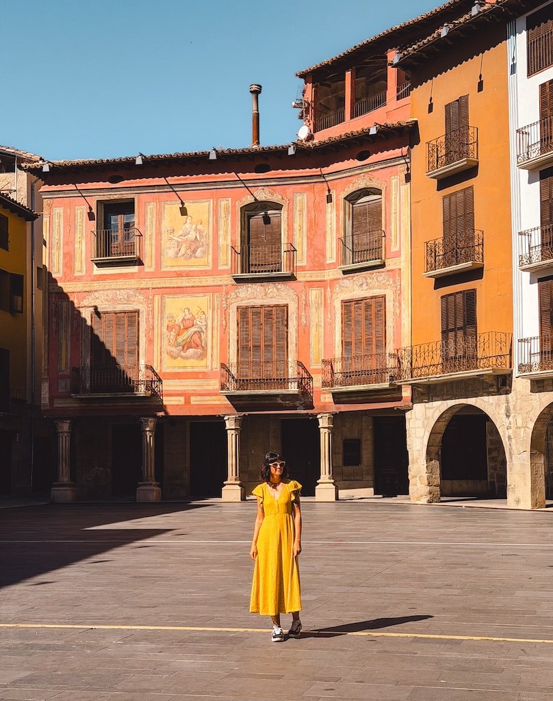 Pasea por su Plaza Mayor porticada, una de las más bonitas de Aragón, y disfruta de la arquitectura tradicional de sus casas señoriales.