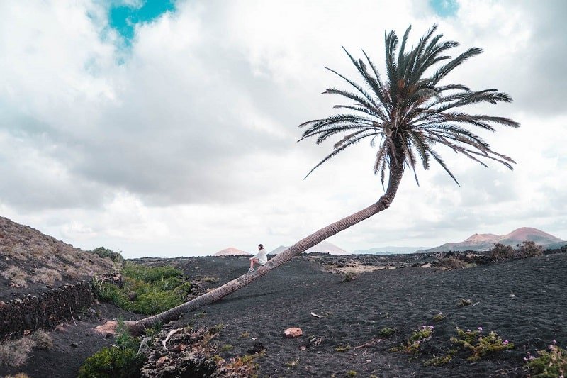 Nos apuntamos esta localización para hacer fotos, y la verdad, que no solo merece la pena por lo curioso de esta palmera, sino todo el paisaje que la rodea. El camino hasta llegar a ella es espectacular! Es como si un dragón acabara de echar fuego arrasando todo. En serio, de otro planeta. Una paz brutal y el contraste de colores te deja sin palabras.