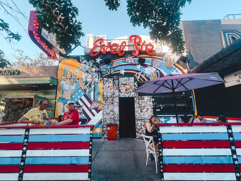 Para cenar o tomar algo, te recomendamos 2 locales super originales y auténticos en la misma Fremont Street: Evel Pie y Park On Fremont.